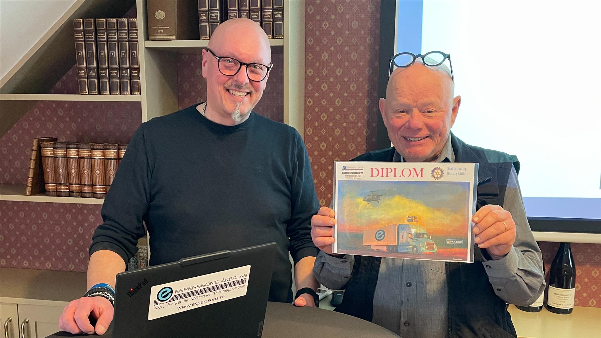 Vid gårdagens möte berättade Stefan Espersson om sitt omfattande ideella arbete med hjälpsändningar till Ukraina. Hjälparbetet startade 2022 och genomfördes då med 5–6 skåpbilar, med två personer i varje bil. Eftersom det blev en dyr lösning har transporterna senare ställts om till två trailers, som vardera kan lasta omkring 200 kubikmeter varor. Resorna har genomförts 3–4 gånger per år och den 1 april kör han till Ukraina för sjunde gången.